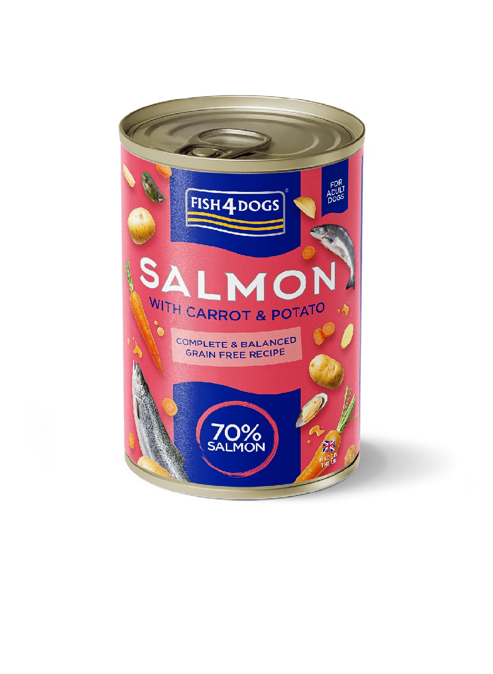 Παρασκευασμένη από Σολωμό και Πατάτα , υψηλής ποιότητας συστατικά, τα οποία δεν περιέχουν σιτηρά, τεχνητές χρωστικές και συντηρητικά.